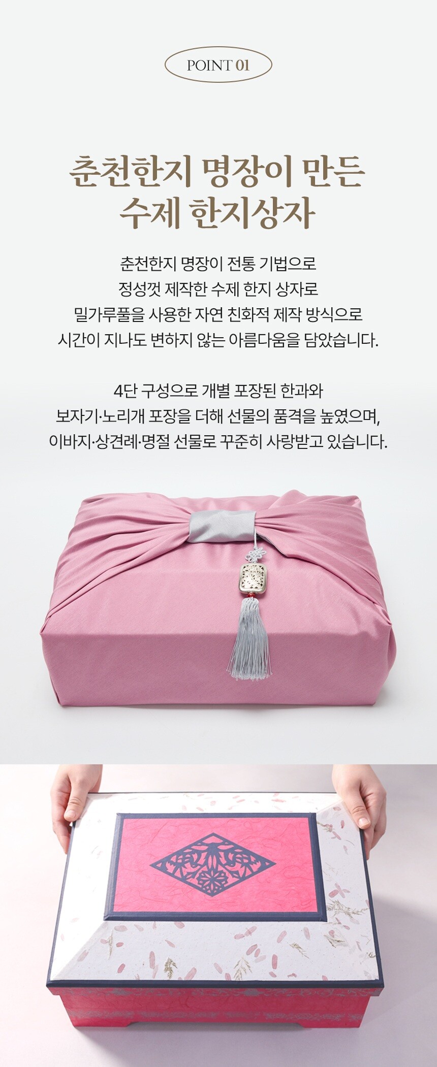 강릉무진장한과 춘천한지대 선물세트(인디핑크 고급보자기*노리개) |